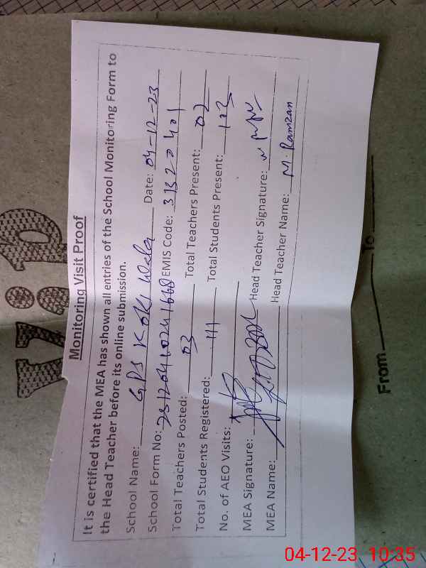 | EMIS Code: 31320401 | Name of School: GPS KOKI WALA | |||