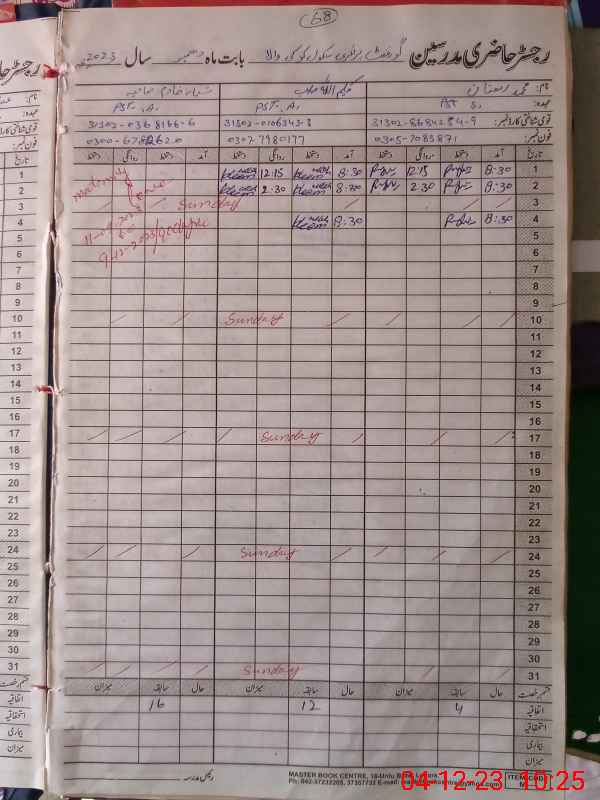 | Name: MU**** RA**** Designation: (School Headmaster's/Headmistress's) PST/PTC/JV Phone/Cell Number: 03**** |