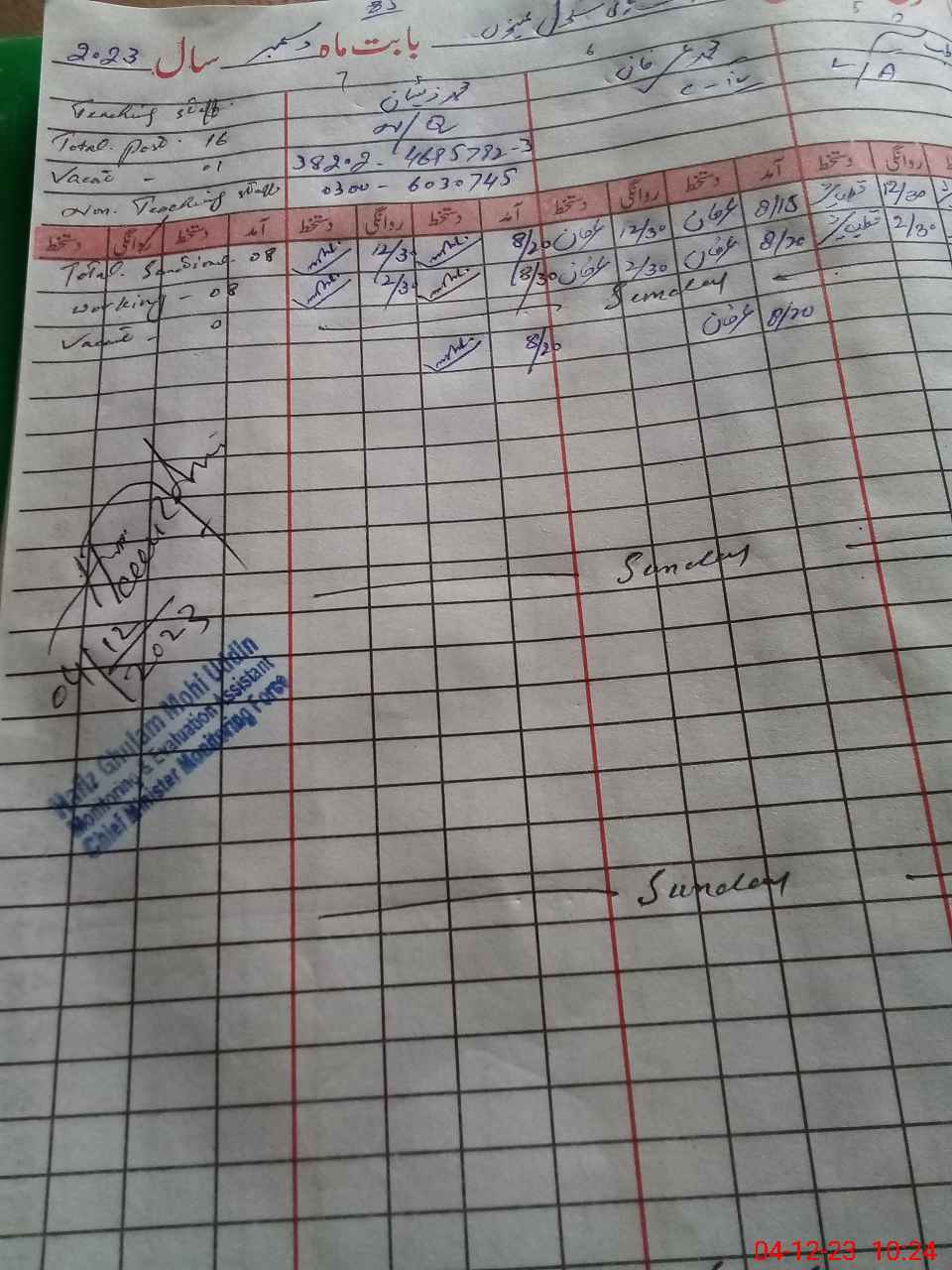 | Name: Sh**** Ab**** Designation: (School Headmaster's/Headmistress's) HEADMASTER Phone/Cell Number: 03**** |