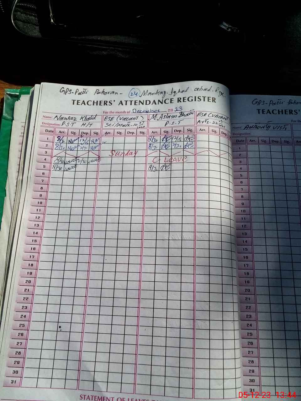 | CNIC | Full Name | Designation | R/C | Absence During Last Calender Month |