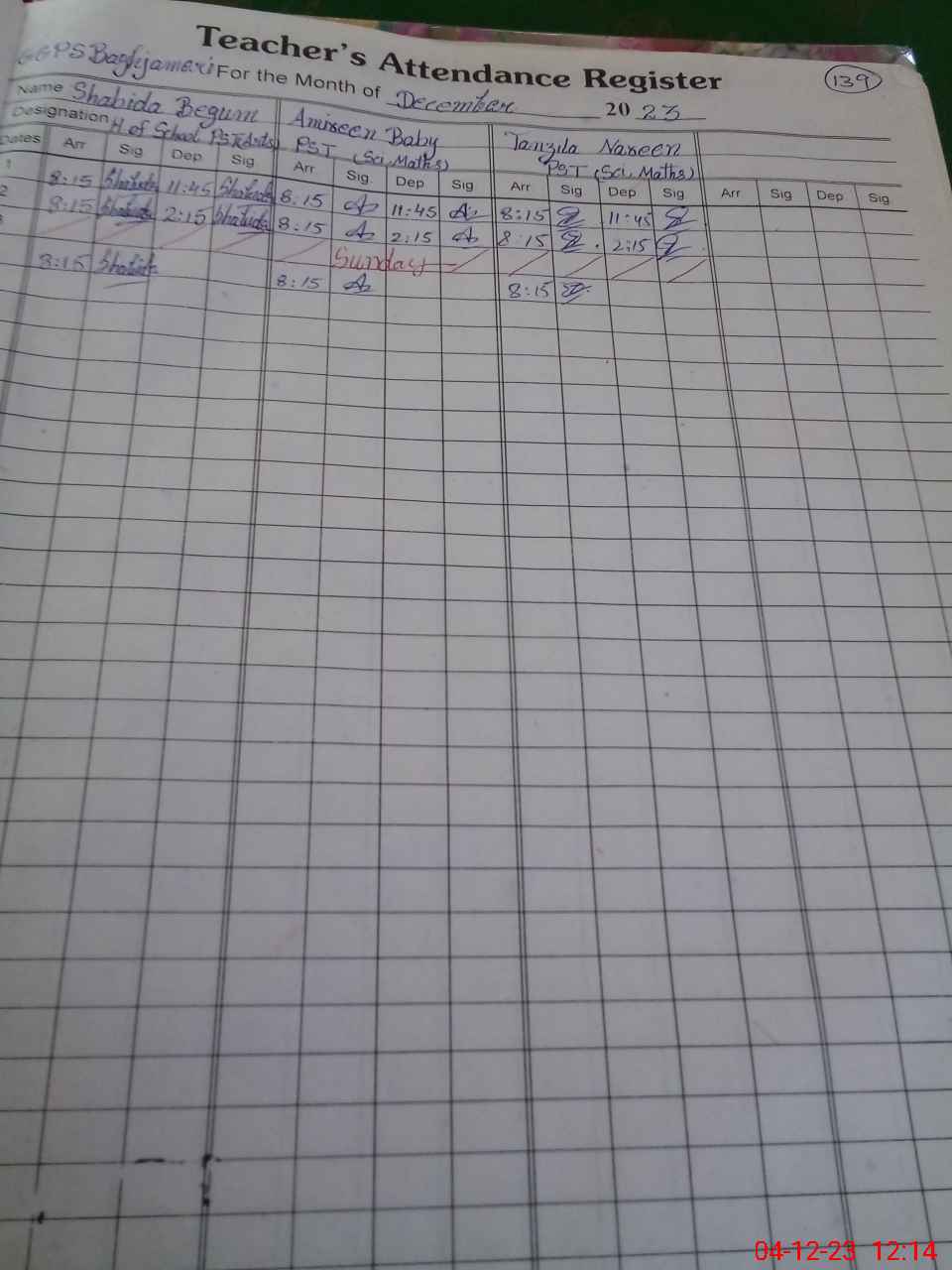 | Name: Sh**** Be**** Designation: (School Headmaster's/Headmistress's) PST Phone/Cell Number: 03**** |
