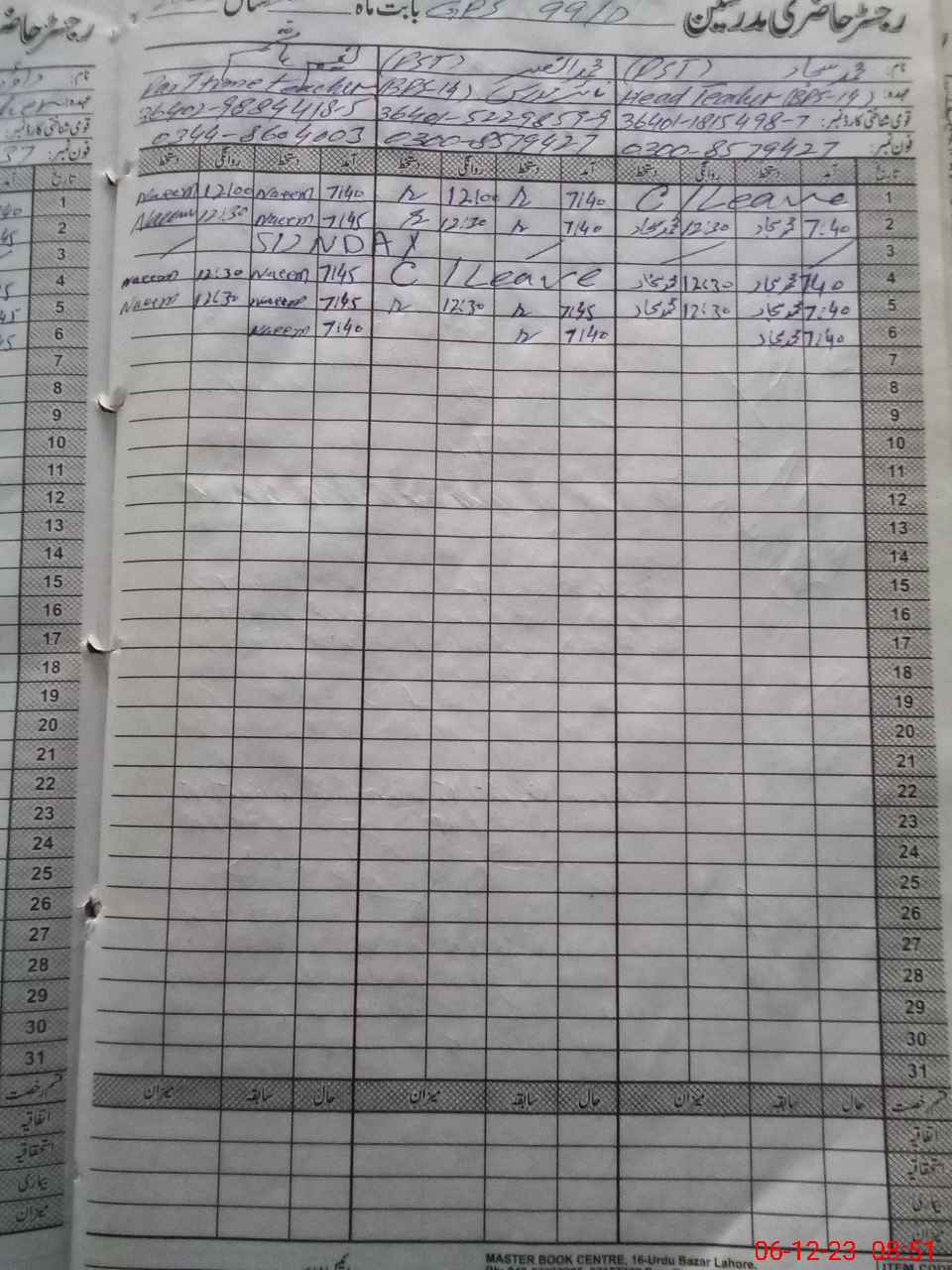 | Name: MU**** SA**** Designation: (School Headmaster's/Headmistress's) PST Phone/Cell Number: 03**** |