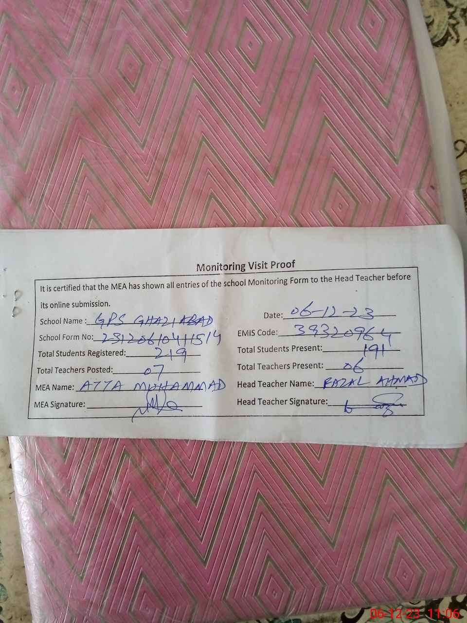 | EMIS Code: 39320964 | Name of School: GPS MC GHAZI ABAD | |||