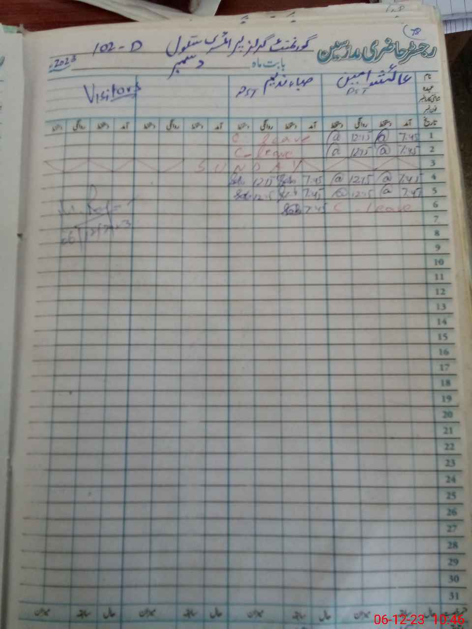 | CNIC | Full Name | Designation | R/C | Absence During Last Calender Month |