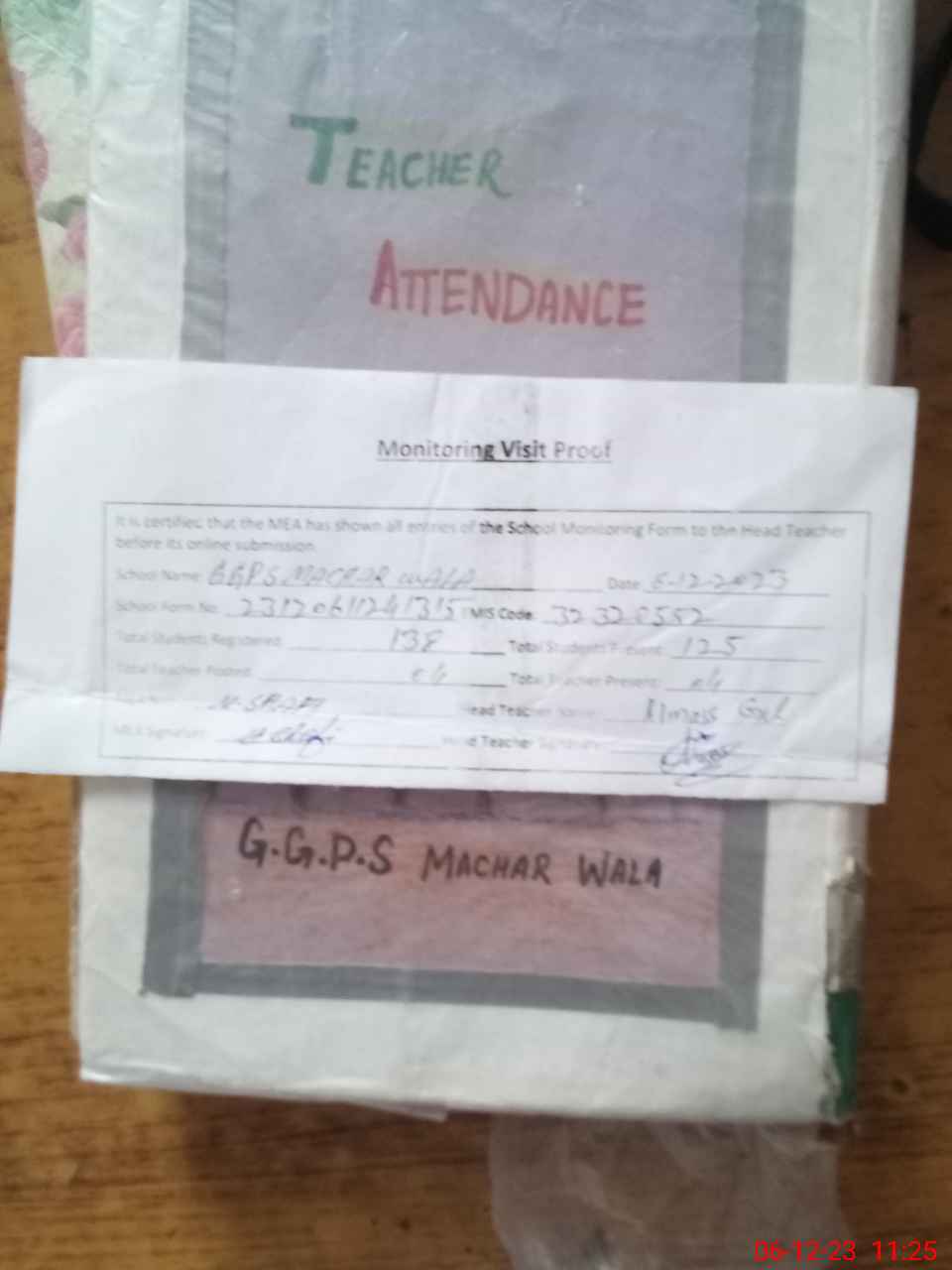 | EMIS Code: 32320552 | Name of School: GGPS MACHAR WALA | |||