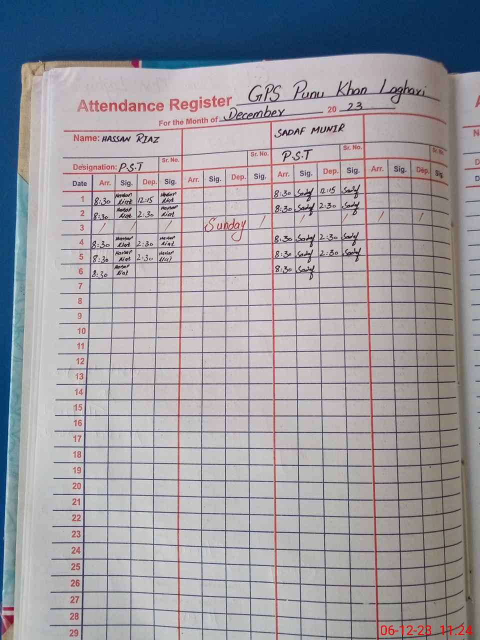 | Name: HA**** RI**** Designation: (School Headmaster's/Headmistress's) PST Phone/Cell Number: 03**** |