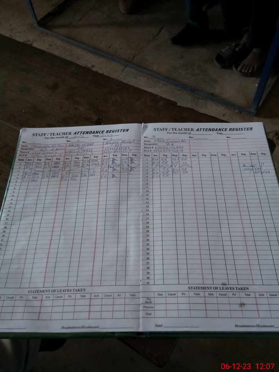 | Name: Gh**** Al**** Kh**** Designation: (School Headmaster's/Headmistress's) PST Phone/Cell Number: 03**** |