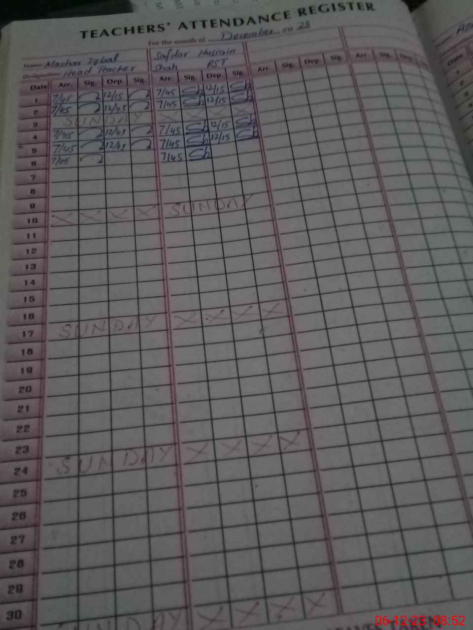 | Name: MA**** IQ**** Designation: (School Headmaster's/Headmistress's) PST Phone/Cell Number: 03**** |