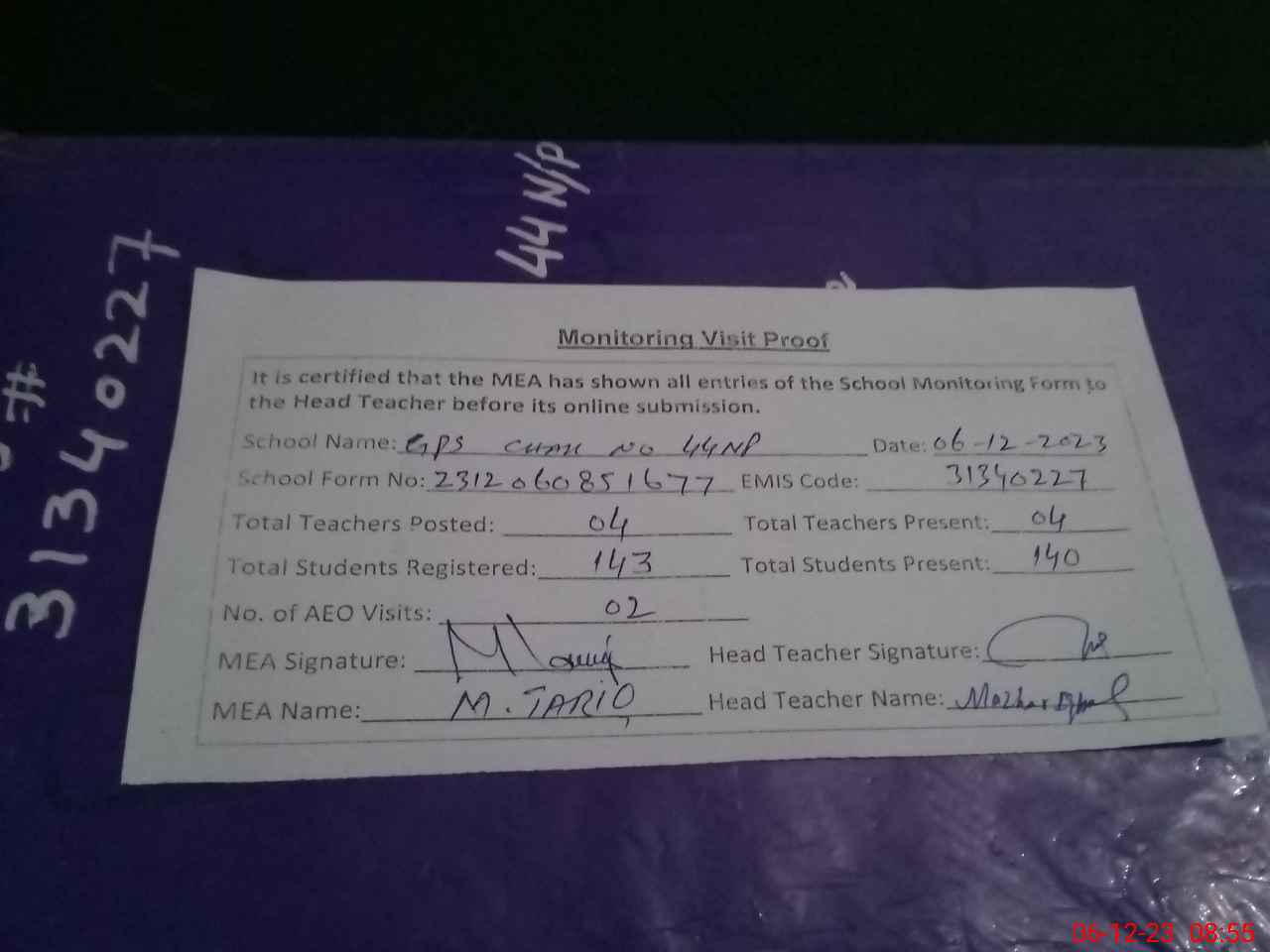 | EMIS Code: 31340227 | Name of School: GPS CHAK NO. 44 NP | |||