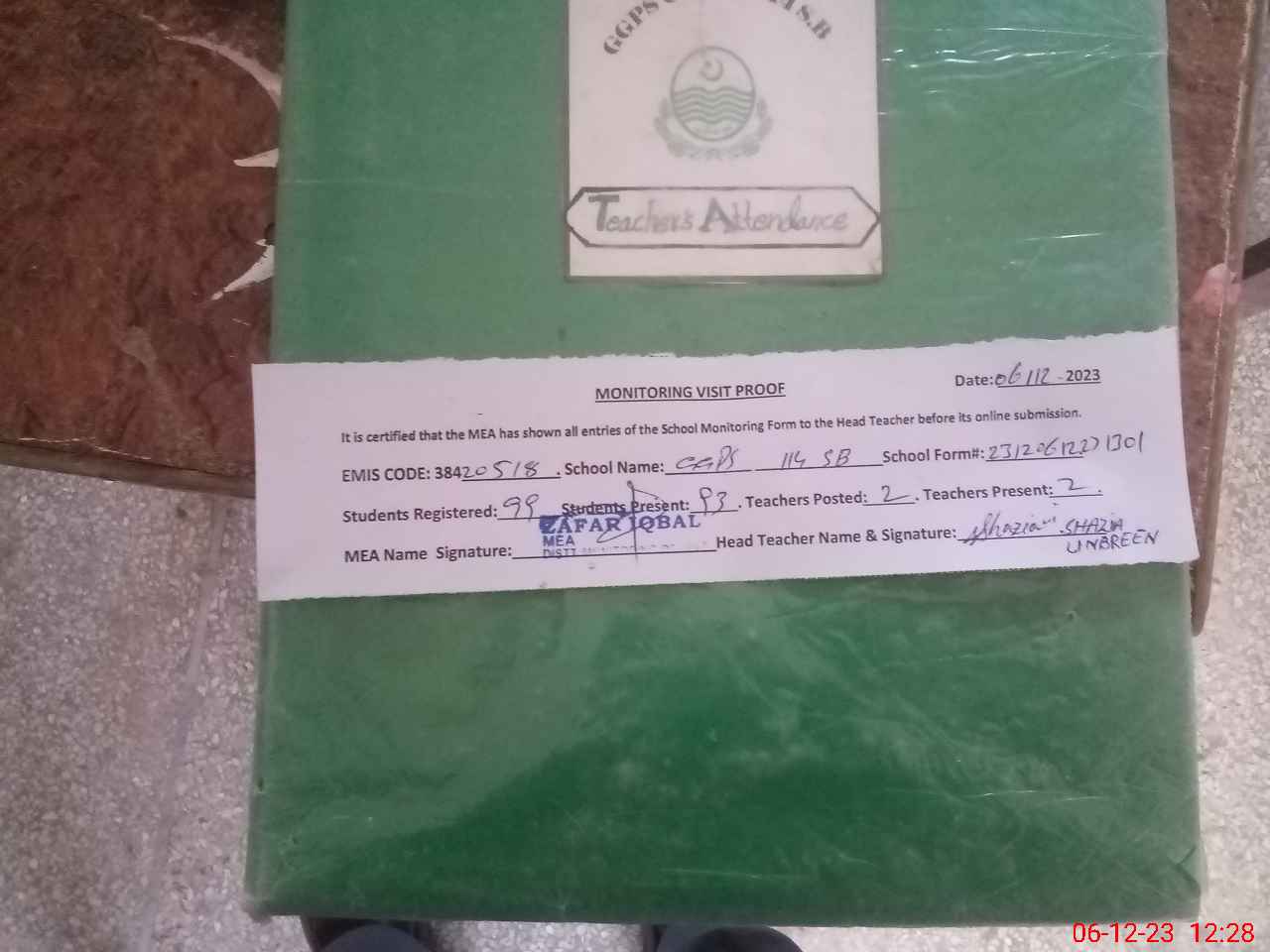 | Attendance Register | Head Teacher | MEA with School | Visit Proof |