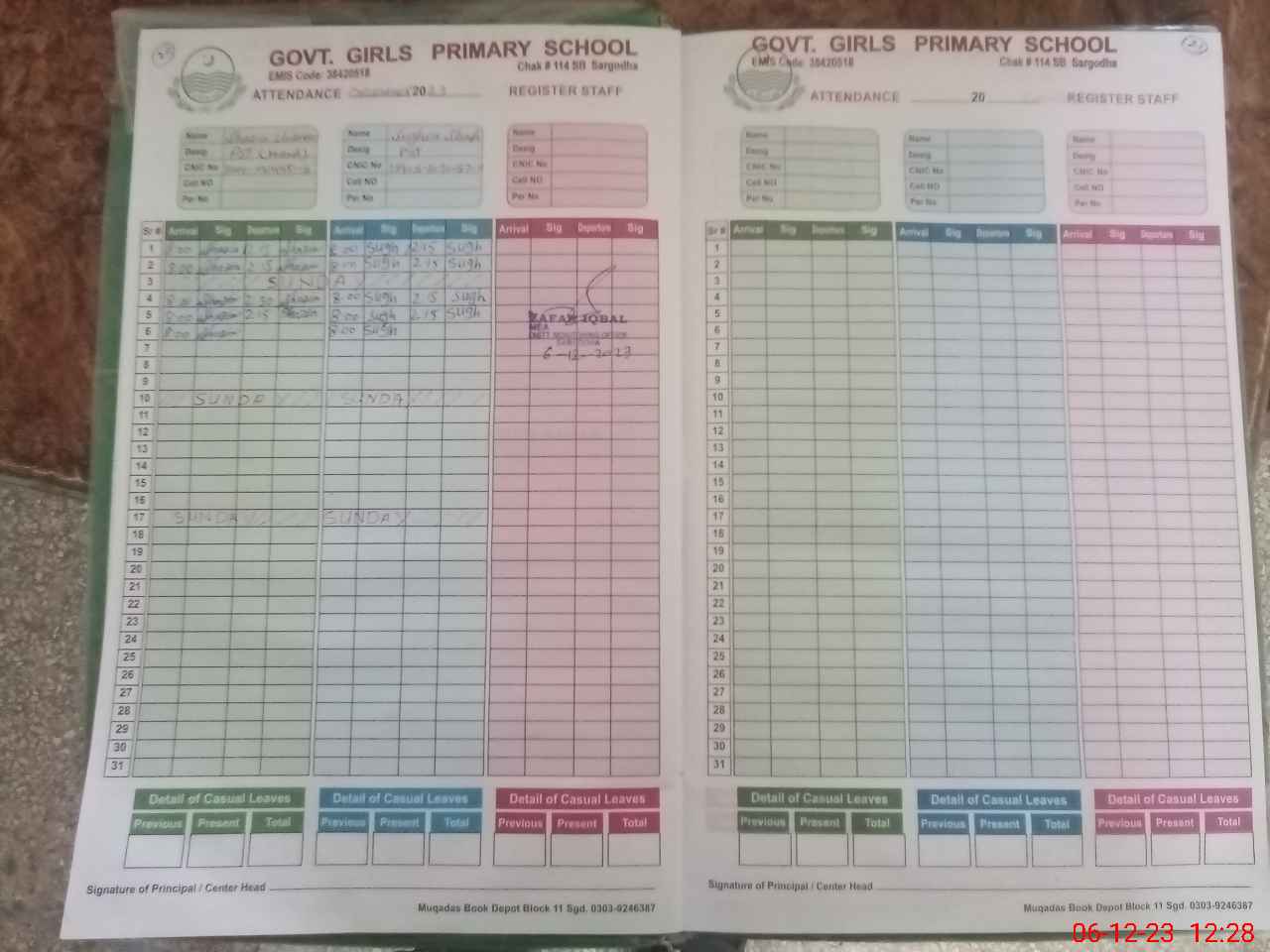 | Name: SH**** UN**** Designation: (School Headmaster's/Headmistress's) PST Phone/Cell Number: 03**** |