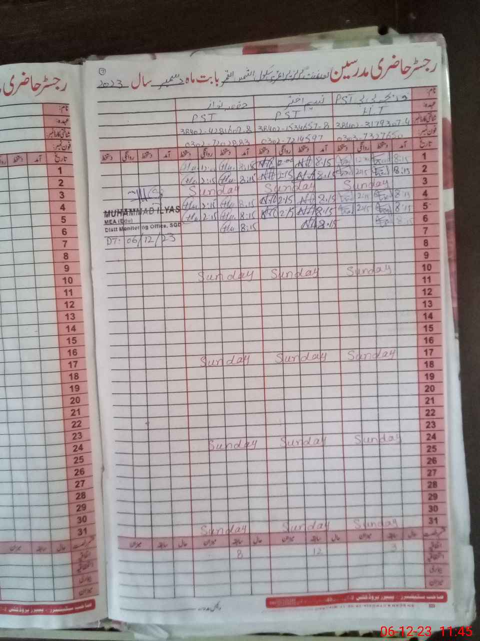| Name: KH**** BI**** Designation: (School Headmaster's/Headmistress's) PST Phone/Cell Number: 03**** |
