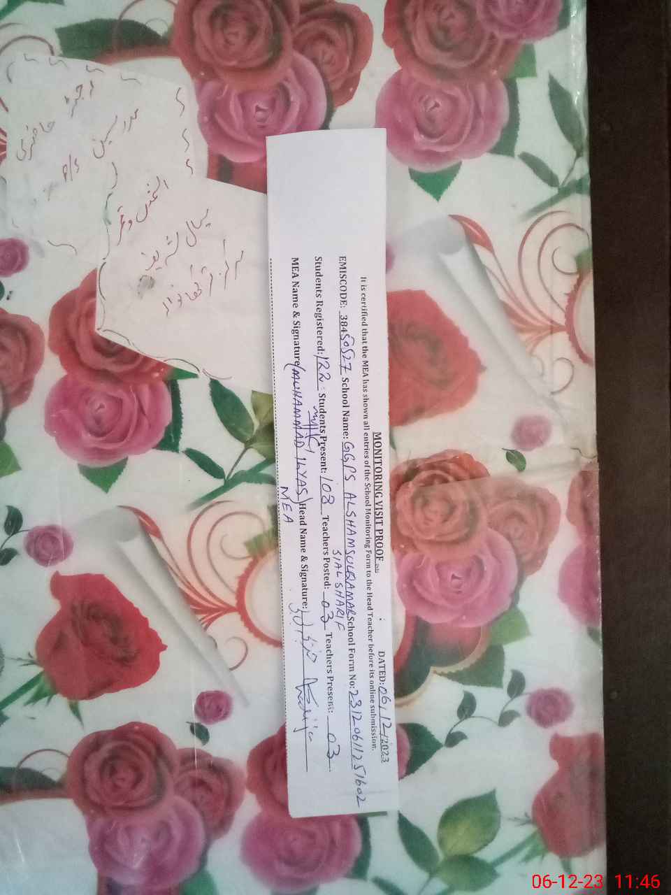 | EMIS Code: 38450527 | Name of School: GGPS AL-SHAMAS-UL-QAMAR (NEW NAME) | |||