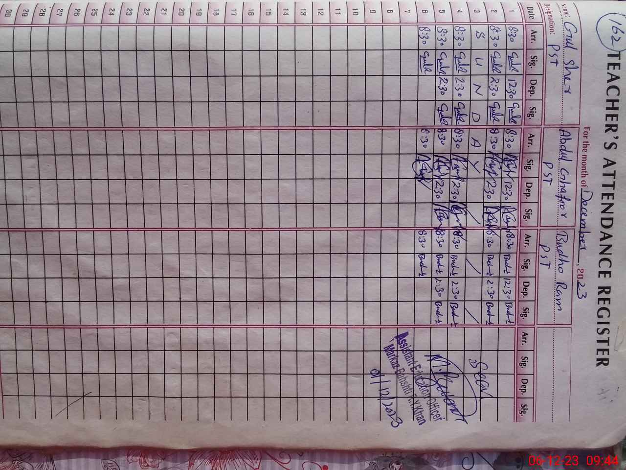 | Name: Gu**** Designation: (School Headmaster's/Headmistress's) PST/PTC/JV Phone/Cell Number: 03**** |