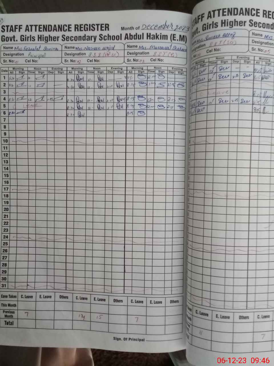 | CNIC | Full Name | Designation | R/C | Absence During Last Calender Month |
