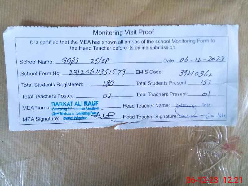 | EMIS Code: 39210362 | Name of School: GGPS 25/SP | |||