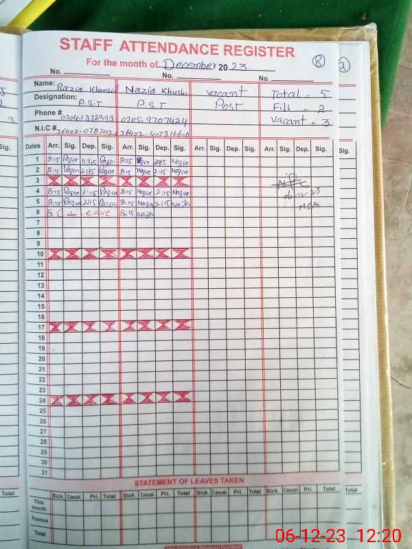 | Name: Na**** Kh**** Designation: (School Headmaster's/Headmistress's) PST Phone/Cell Number: 03**** |