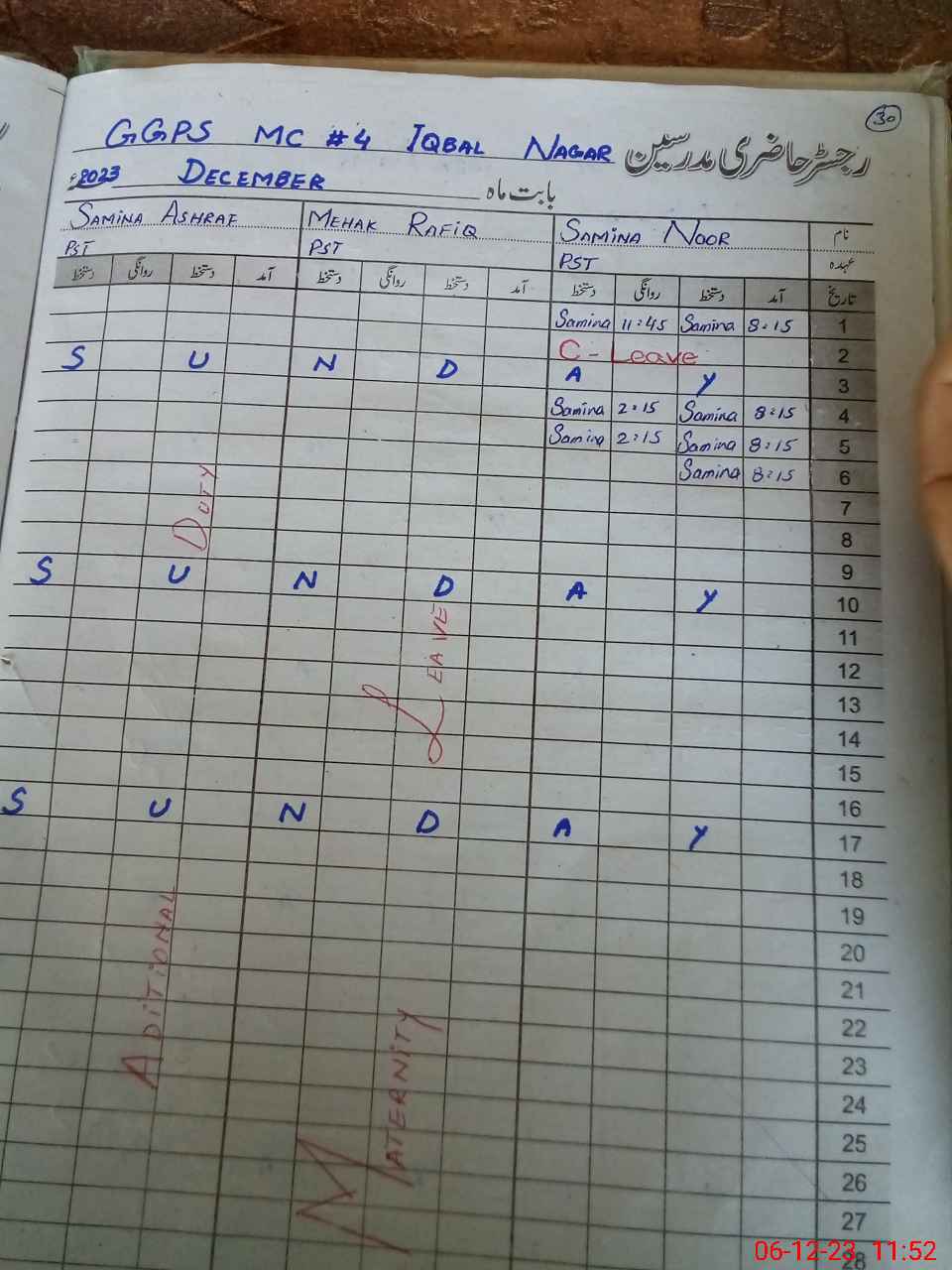 | 36**** | Me**** Ra**** | 1 | 30 | 0 | 0 | 30 | 0 | 0 | 0 | 0 | 0 | Maternity | |