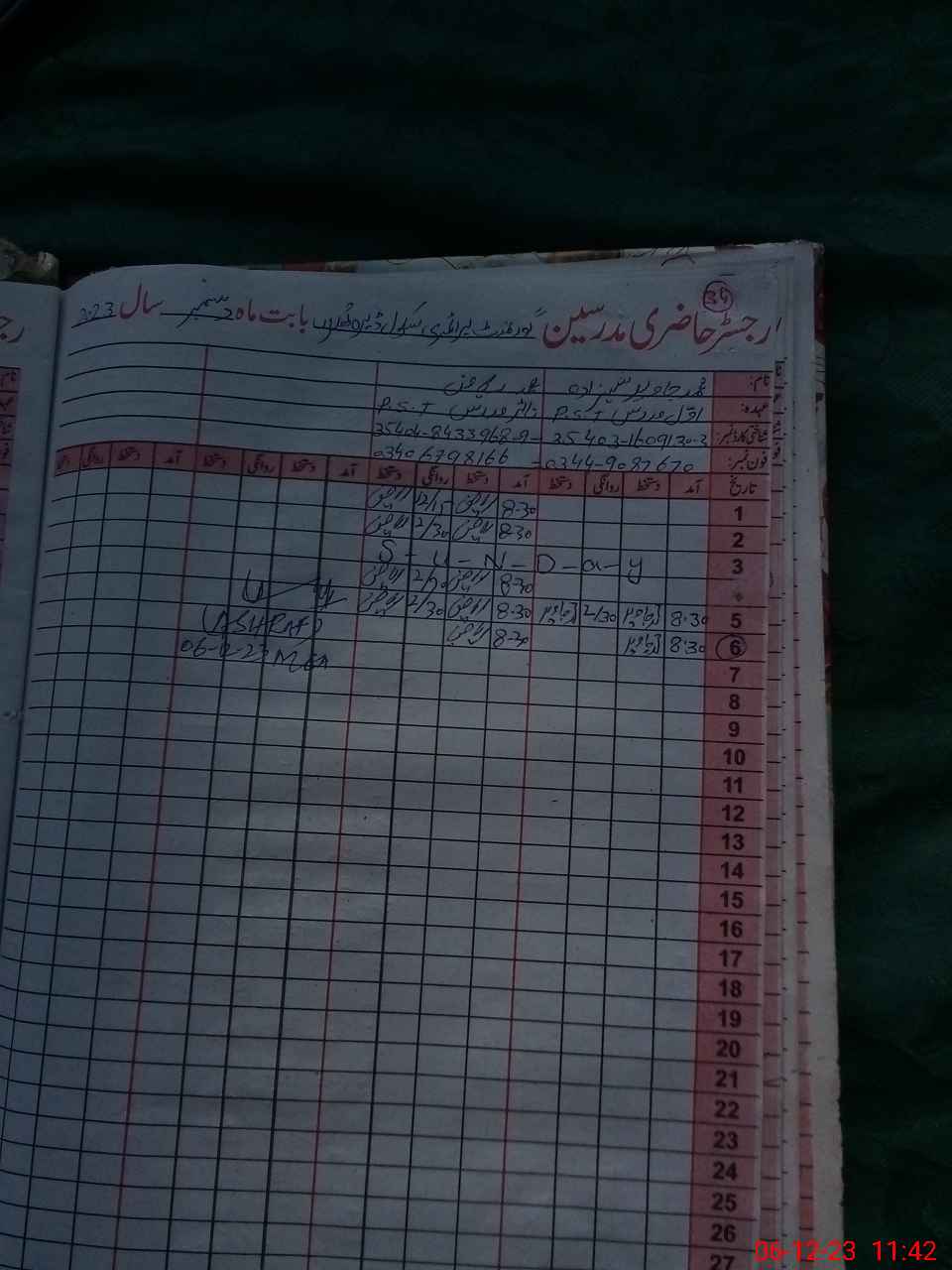 | Name: Mu**** Ja**** Designation: (School Headmaster's/Headmistress's) PST Phone/Cell Number: 03**** |