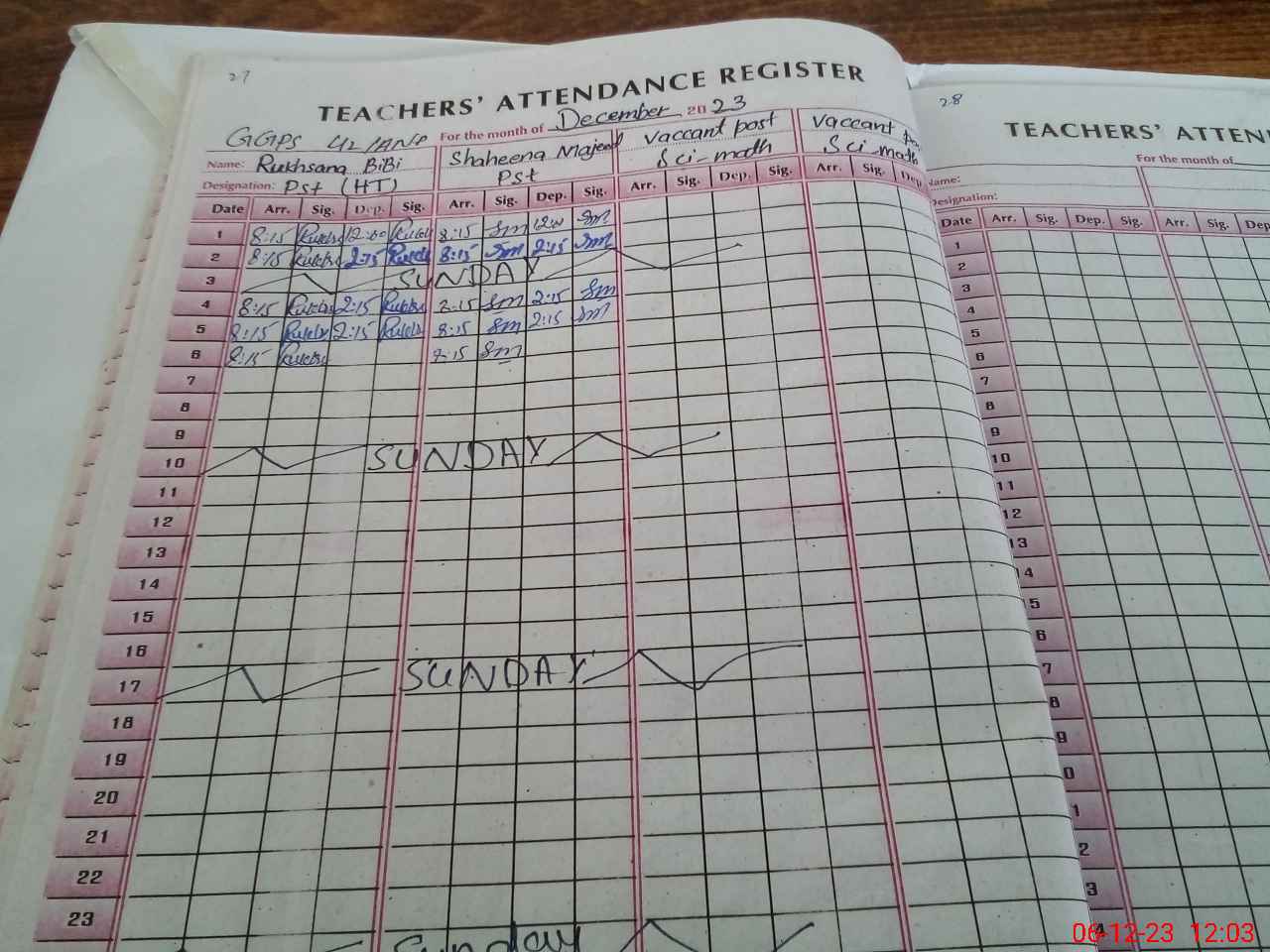 | Name: RU**** Designation: (School Headmaster's/Headmistress's) PST Phone/Cell Number: 03**** |