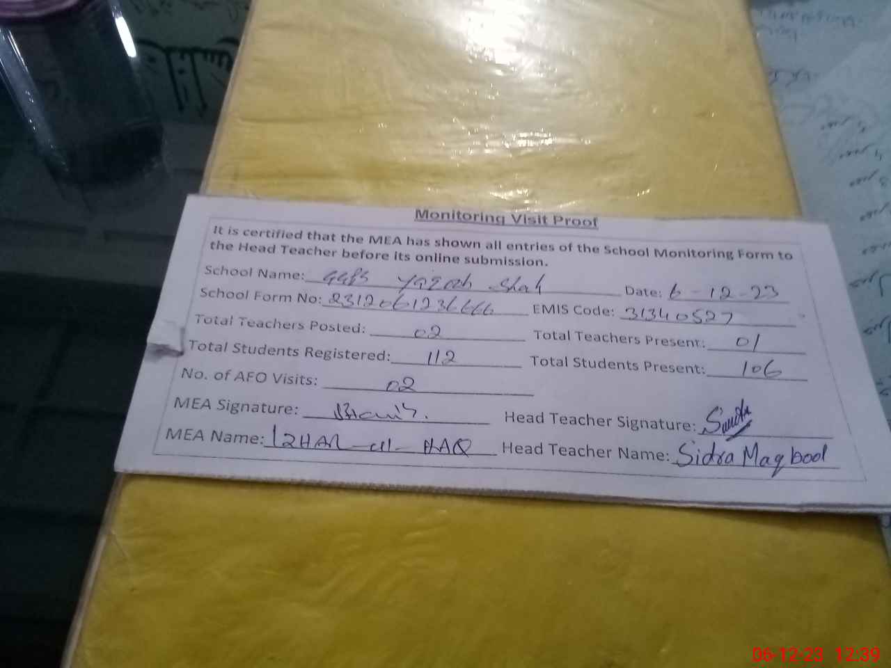 | EMIS Code: 31340527 | Name of School: GGPS YAQOOB SHAH | |||