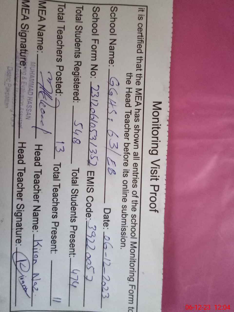 | EMIS Code: 39220057 | Name of School: GGHS 63 EB | |||