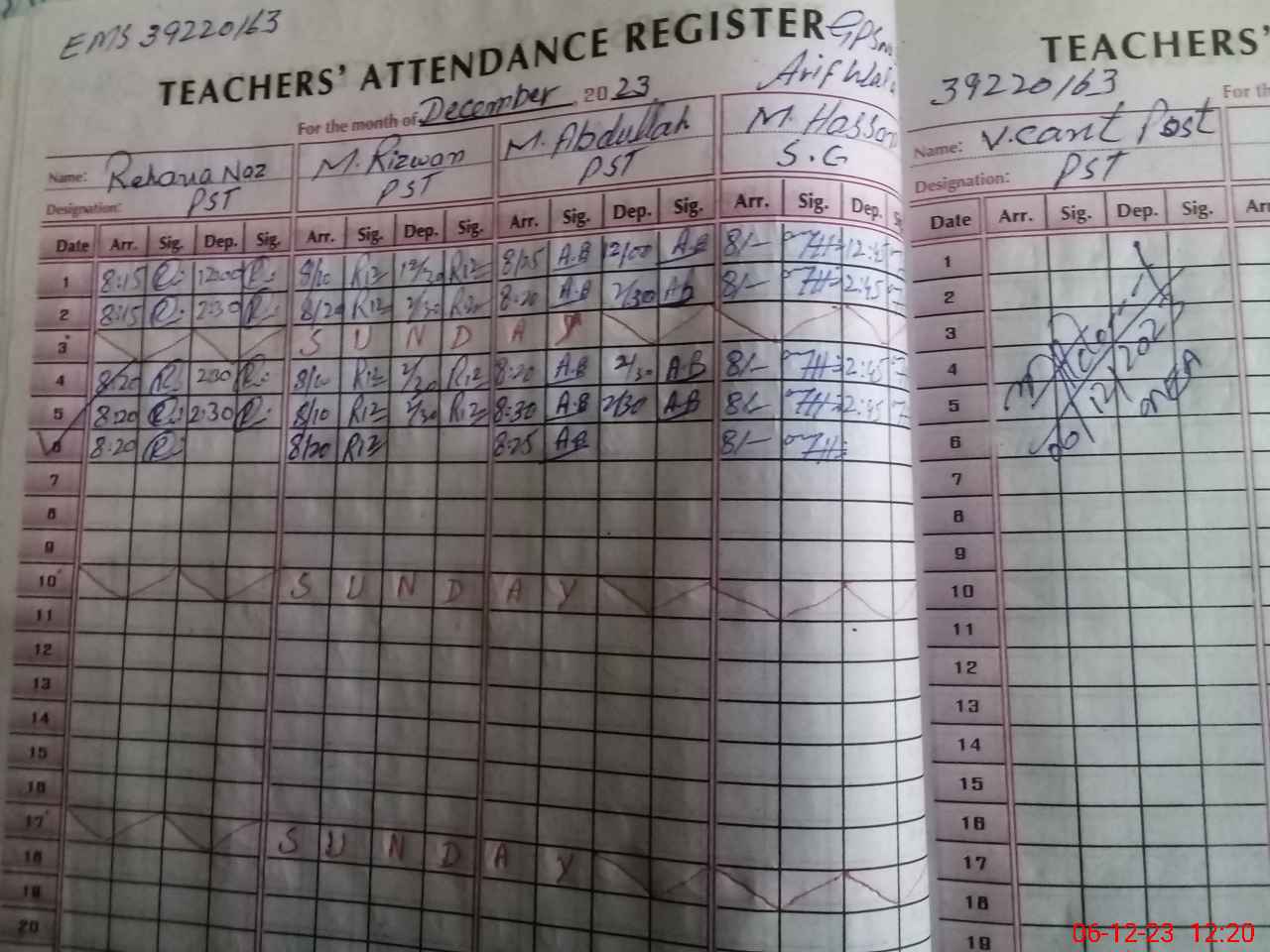 | Name: MU**** IR**** Designation: (School Headmaster's/Headmistress's) PST Phone/Cell Number: 03**** |