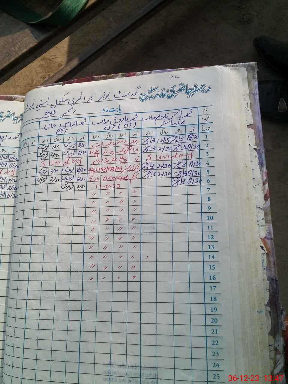 | CNIC | Full Name | Designation | R/C | Absence During Last Calender Month |