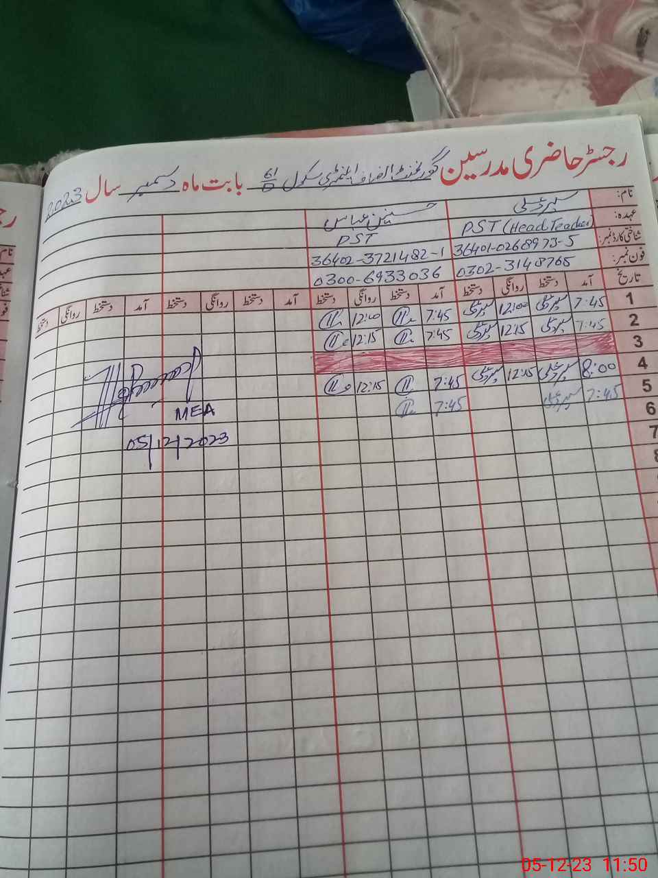 | Name: Sp**** Al**** Designation: (School Headmaster's/Headmistress's) PST Phone/Cell Number: 03**** |