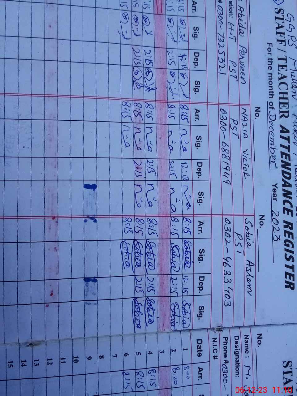 | Name: So**** As**** Designation: (School Headmaster's/Headmistress's) PST Phone/Cell Number: 03**** |