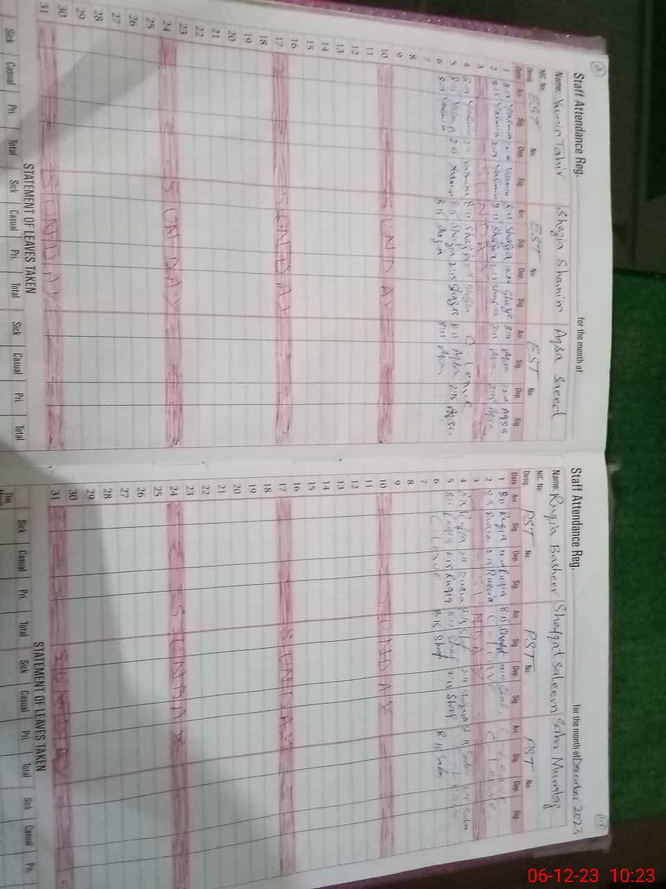 | No. of Students Present - Female | 16 | 0 | 38 | 26 | 20 | 14 | 20 | 13 | 22 | 14 | 8 | 191 | ||||