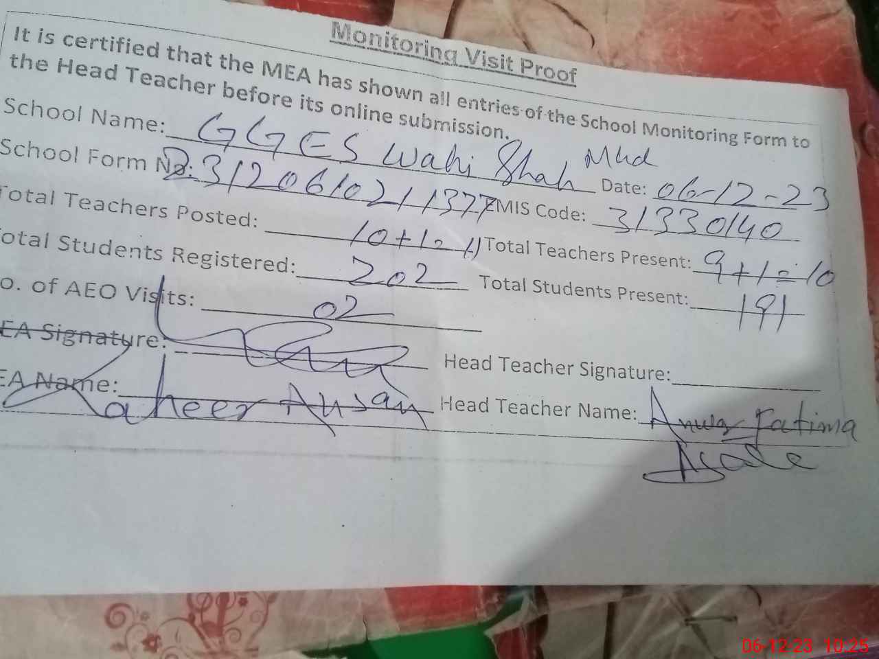 | EMIS Code: 31330140 | Name of School: GGES WAHI SHAH MUHAMMAD | |||