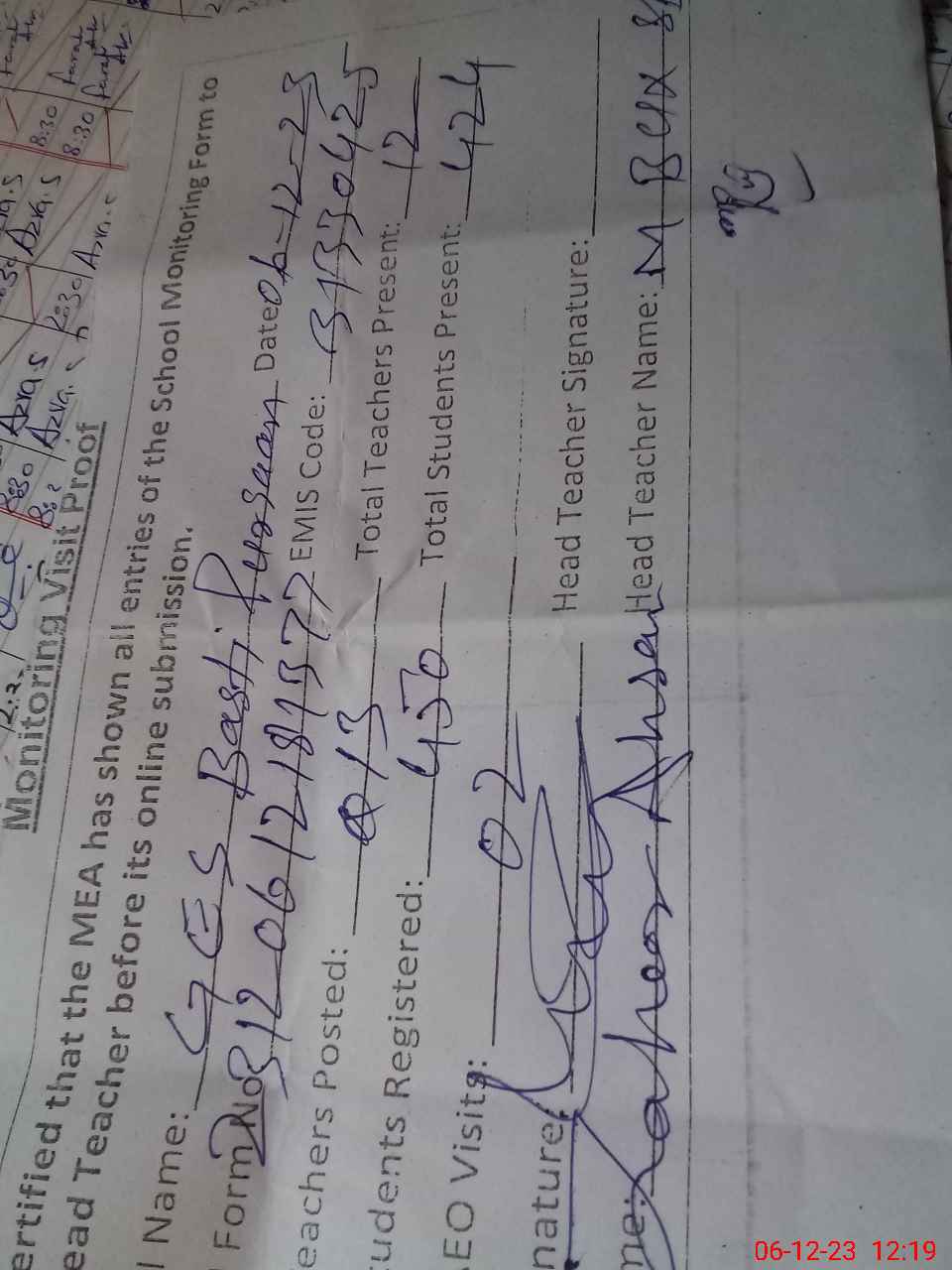 | Name: MU**** SA**** Designation: (School Headmaster's/Headmistress's) SSE Phone/Cell Number: 03**** |