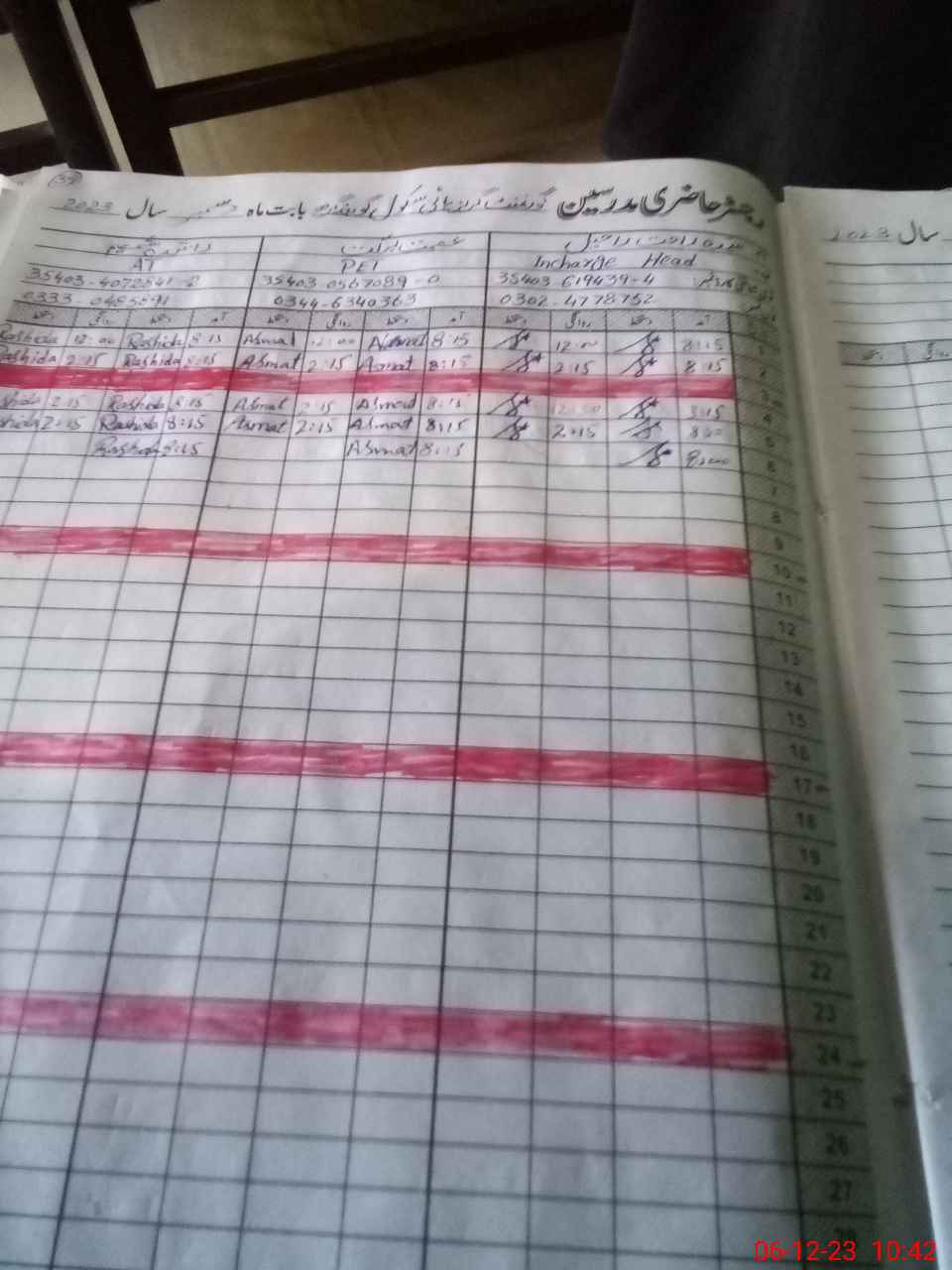 | Name: RA**** RA**** Designation: (School Headmaster's/Headmistress's) SST (General) Phone/Cell Number: 03**** |