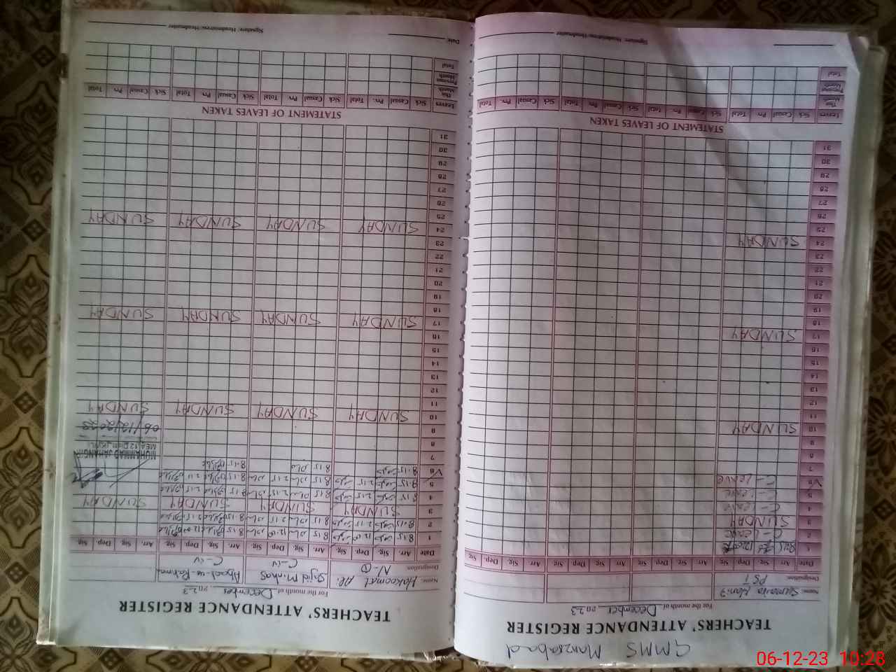 | Remarks (Use Separate Page if Required): SUMAIRA HANIF PST FOUND UN AUTHORISED NO CASUAL LEAVE PROOF FROM 02 DECEMBER 2023 TO TILL IS AVAILABLE ONLY CASUAL LEAVE ARE MENTIONED ON STAFF ATTENDANCE REGISTER NSB GRANTS RECORDS IS NOT AVAILABLE FTF RECORDS IS NOT MAINTAINED TWO TOILETS FOUND LOCKED AND NON FUNCTIONAL ALL HAND WASHING POINTS ARE WITHOUT SOAP RANDOM CLASS ONE IS NOW IN CLASS THREE | |||||