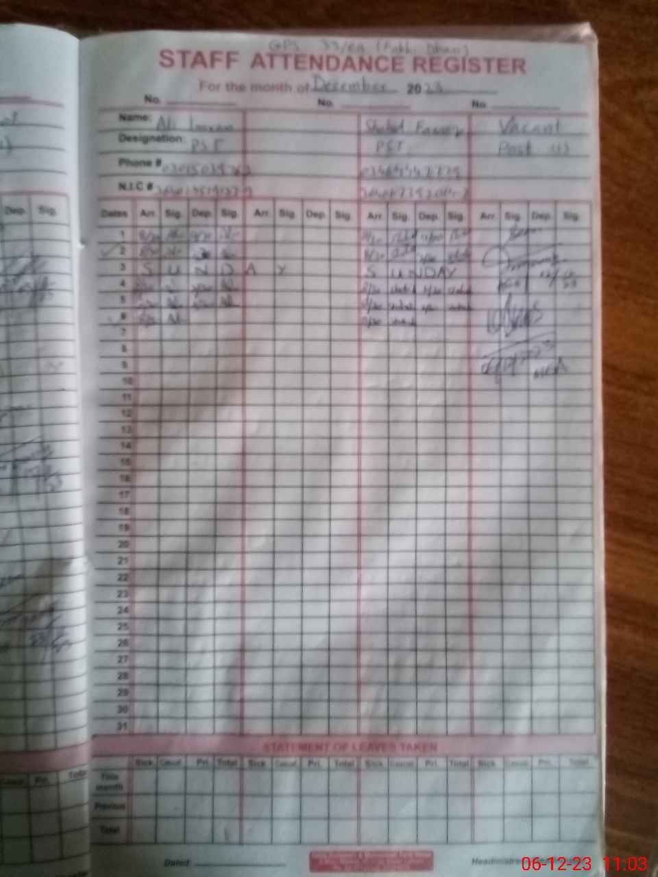 | Name: AL**** IM**** Designation: (School Headmaster's/Headmistress's) PST Phone/Cell Number: 03**** |