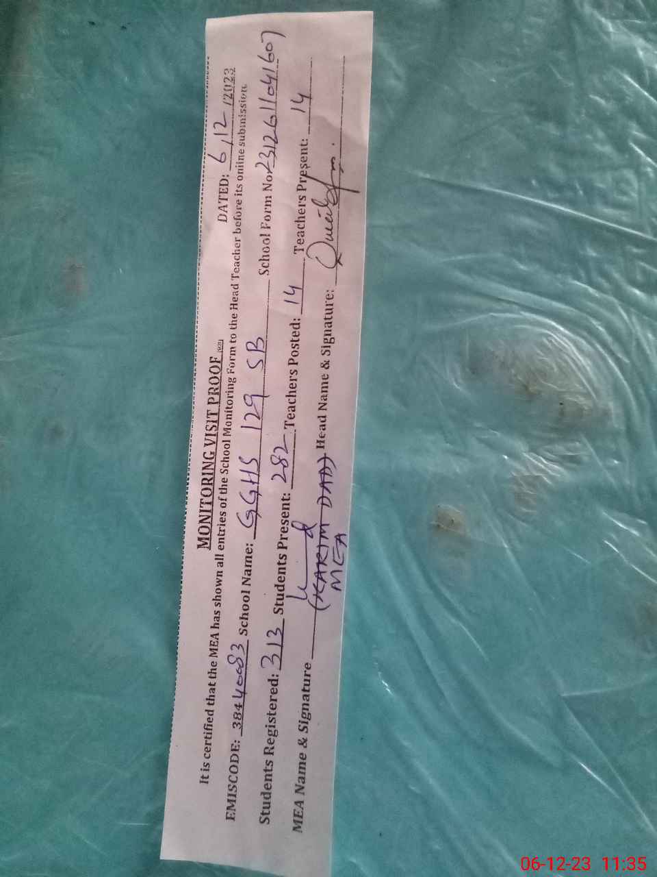 | EMIS Code: 38440083 | Name of School: GGHS CHAK NO 129 SB | |||
