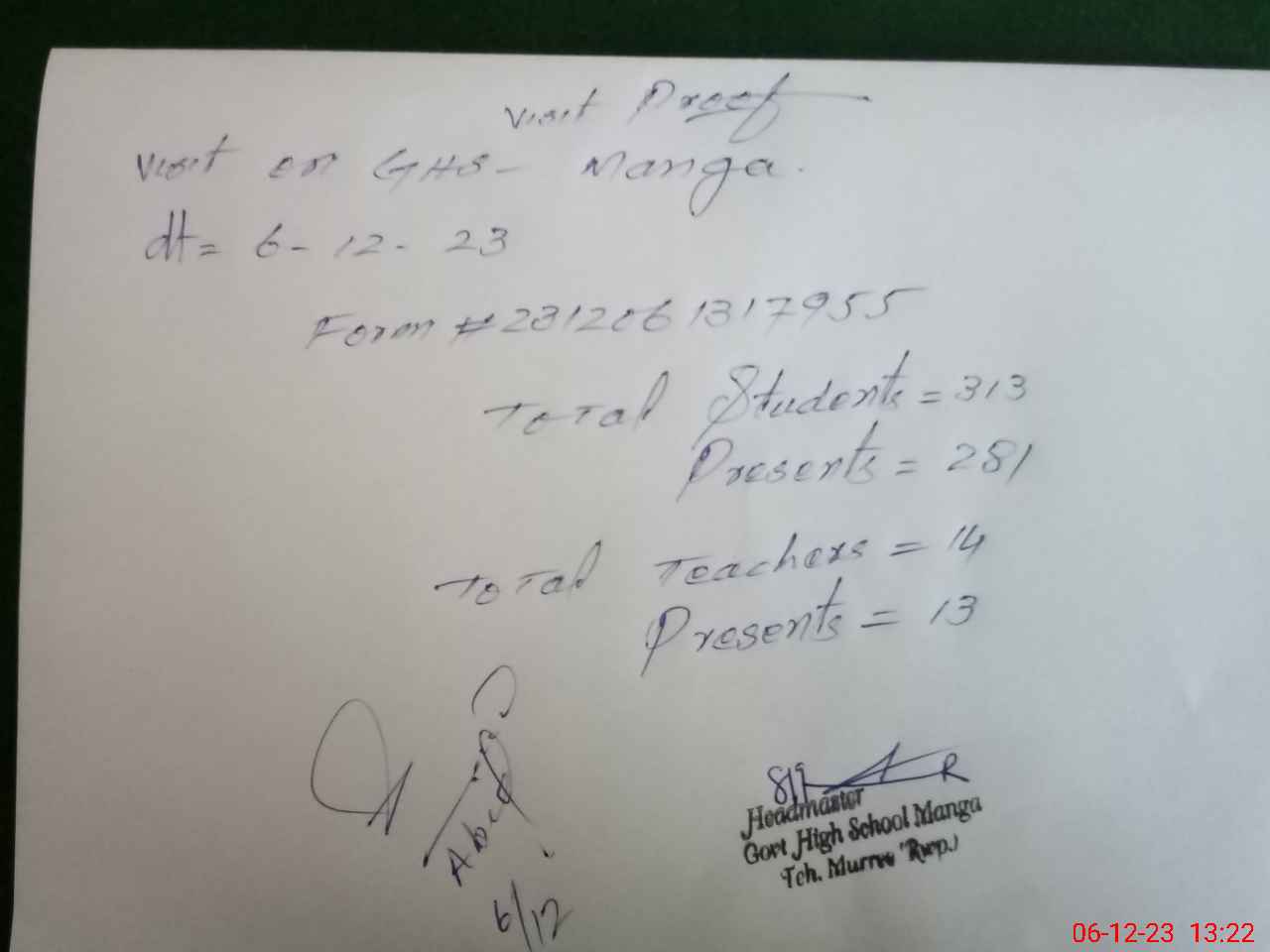 | Name: Mu**** ka**** Designation: (School Headmaster's/Headmistress's) Ic Hm Phone/Cell Number: 03**** |