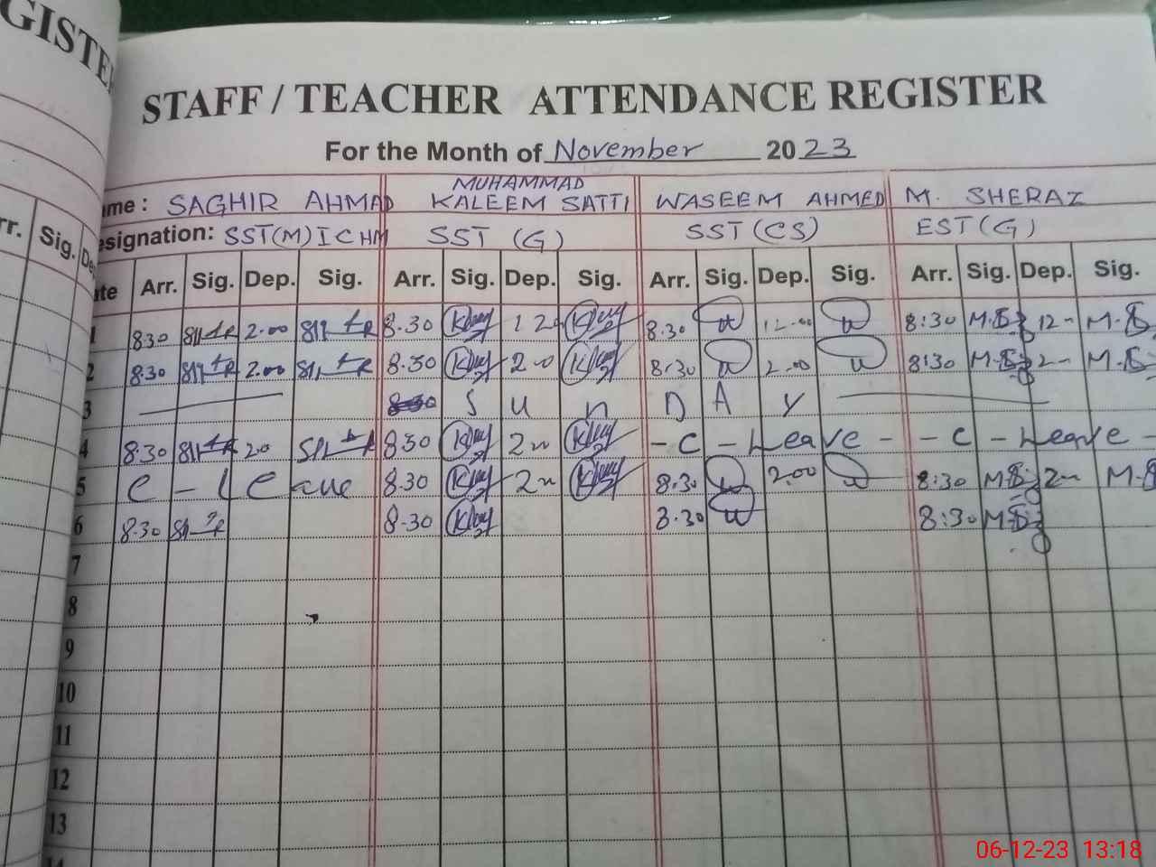 | CNIC | Full Name | Designation | R/C | Absence During Last Calender Month |