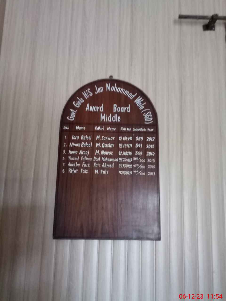 | EMIS Code: 38460105 | Name of School: GGHS JAN MUHAMMAD WALA | |||