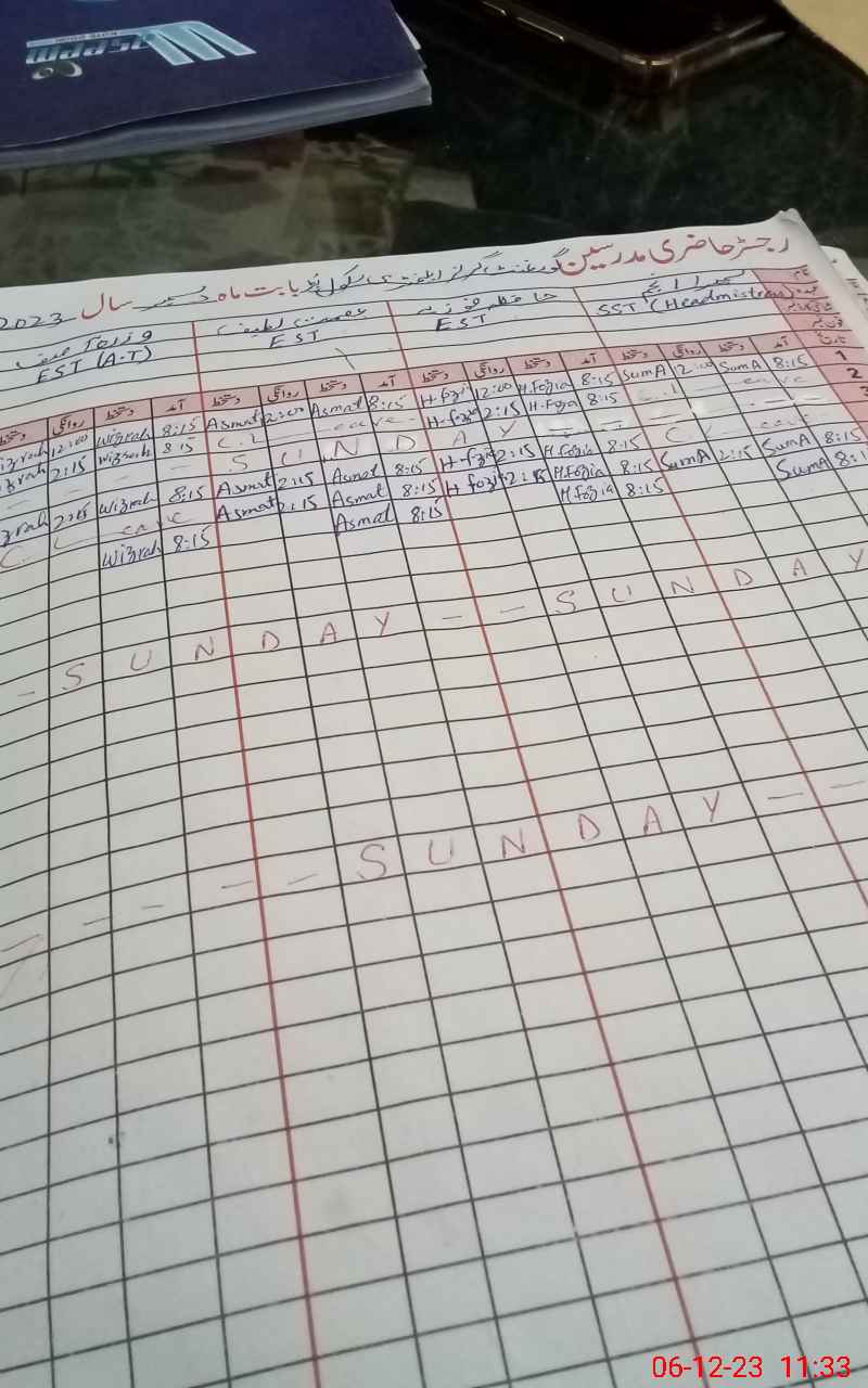 | Name: SU**** AN**** Designation: (School Headmaster's/Headmistress's) S.S.T.(general) Phone/Cell Number: 03**** |