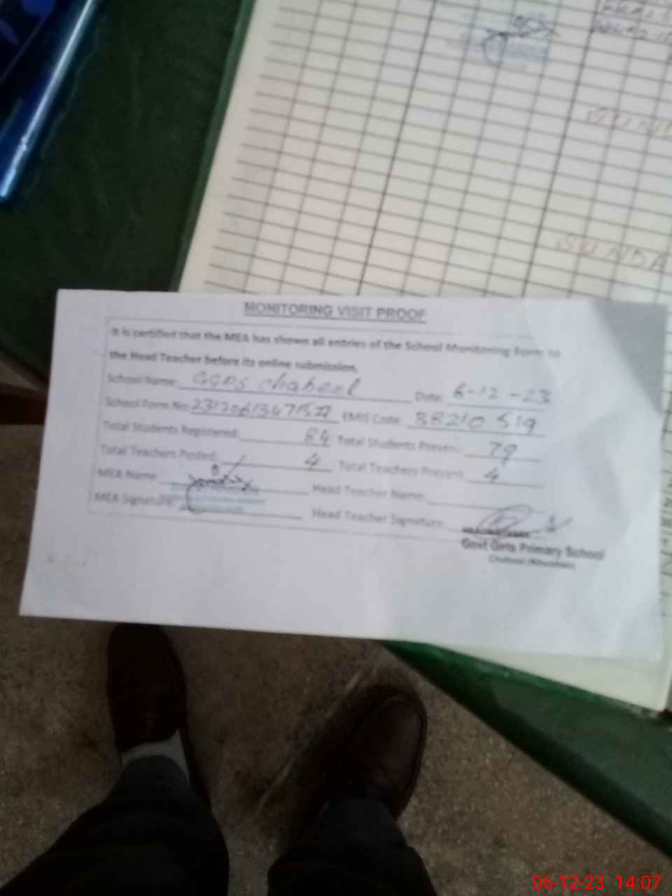 | Attendance Register | Head Teacher | MEA with School | Visit Proof |