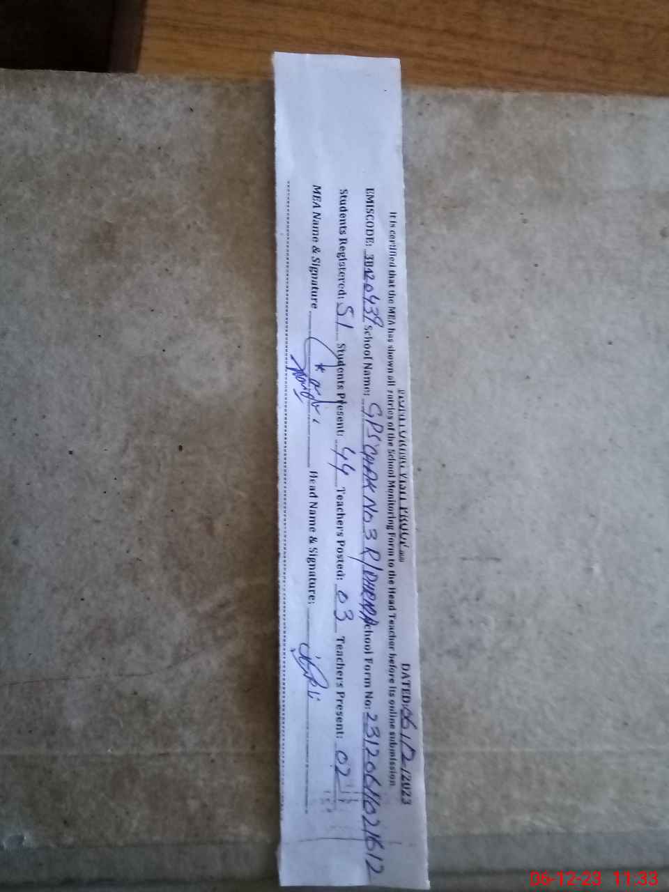 | Attendance Register | Head Teacher | MEA with School | Visit Proof |