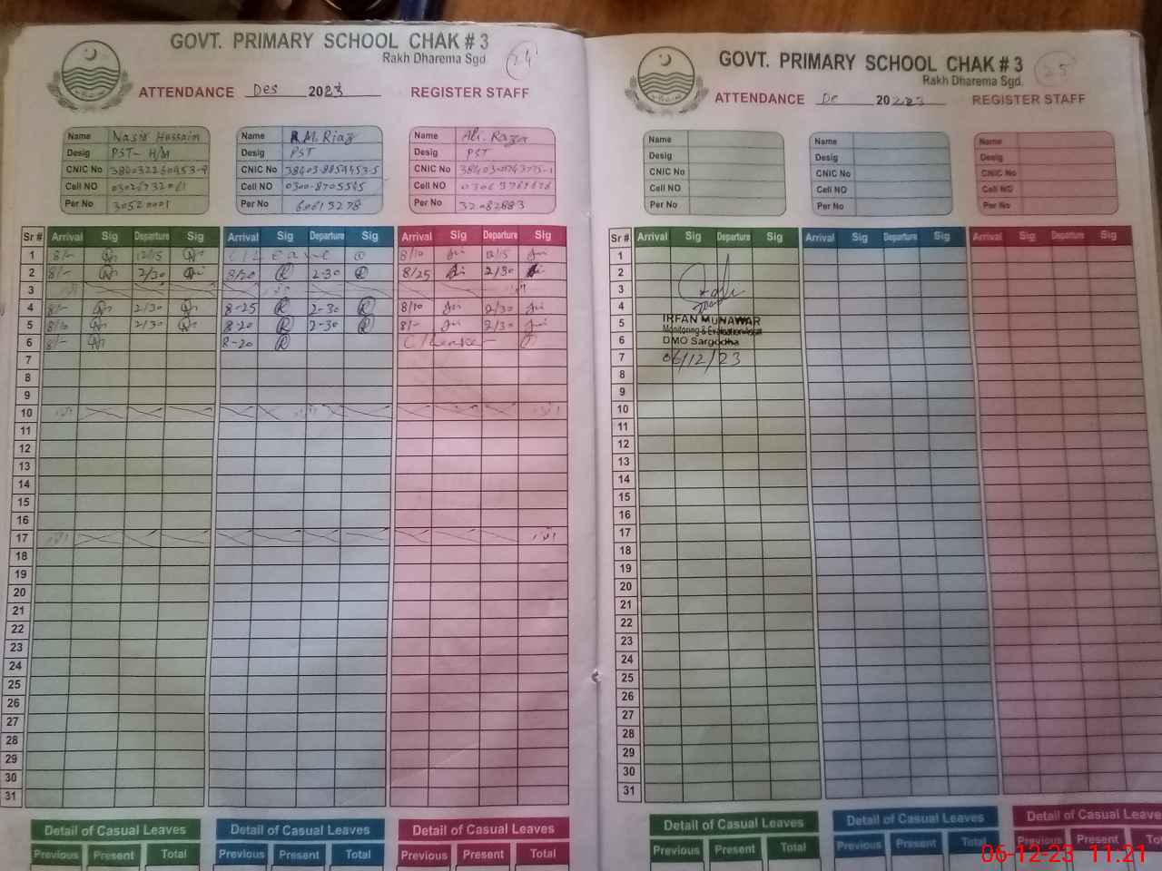 | CNIC | Full Name | Designation | R/C | Absence During Last Calender Month |