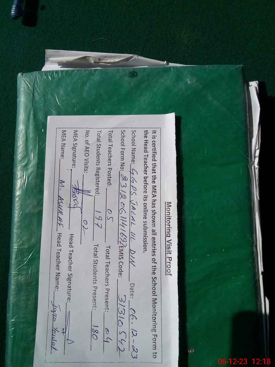 | EMIS Code: 31310542 | Name of School: GGPS BASTI JALAL DIN | |||