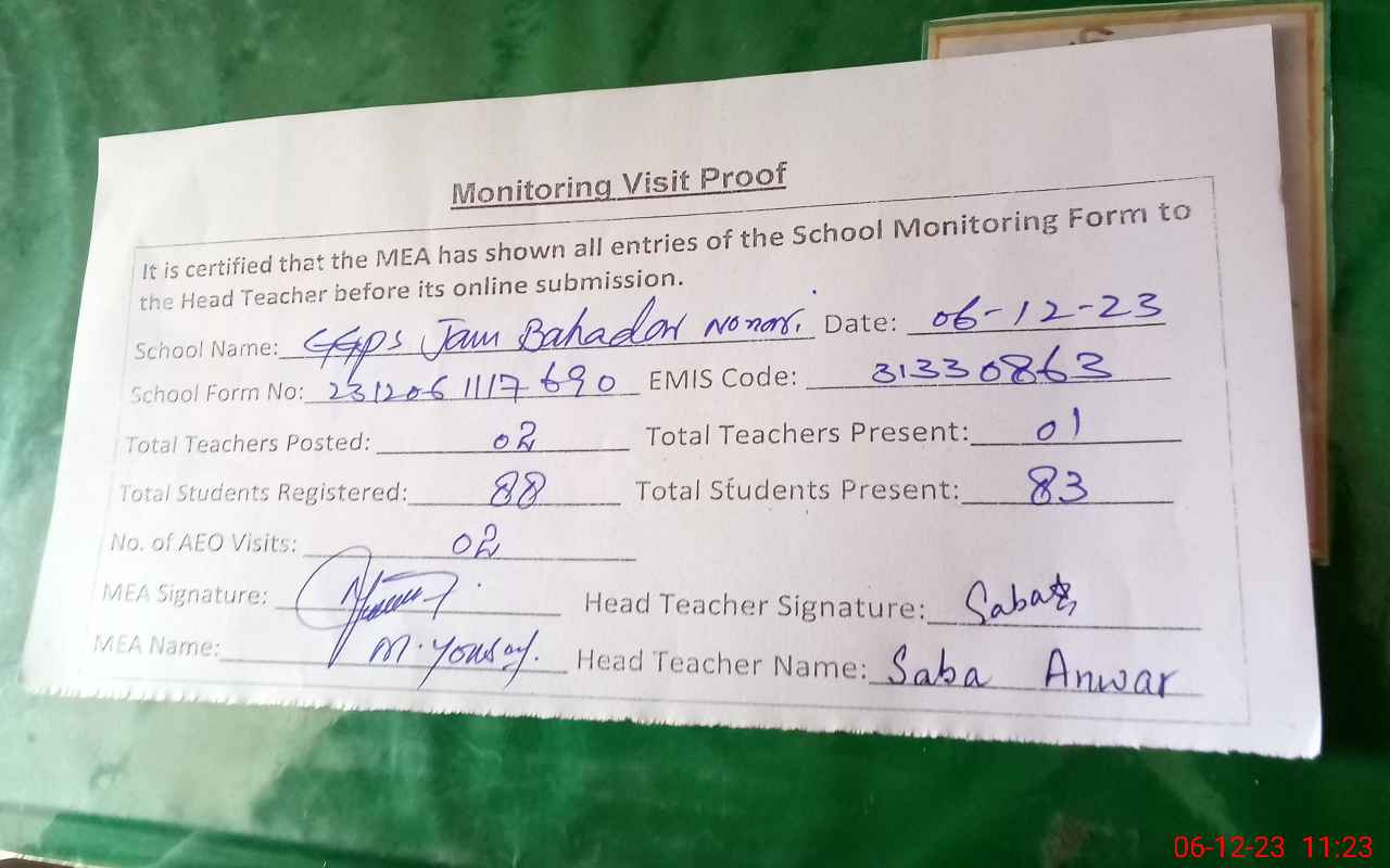 | EMIS Code: 31330863 | Name of School: GGPS JAM BHADAR NONARI | |||