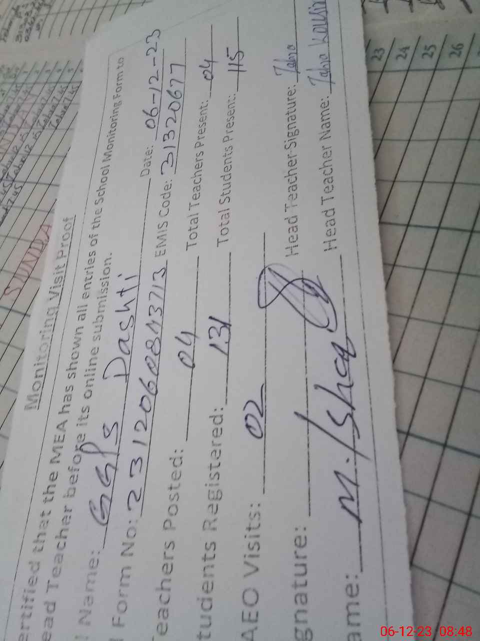 | EMIS Code: 31320677 | Name of School: GGPS DASHTI | |||