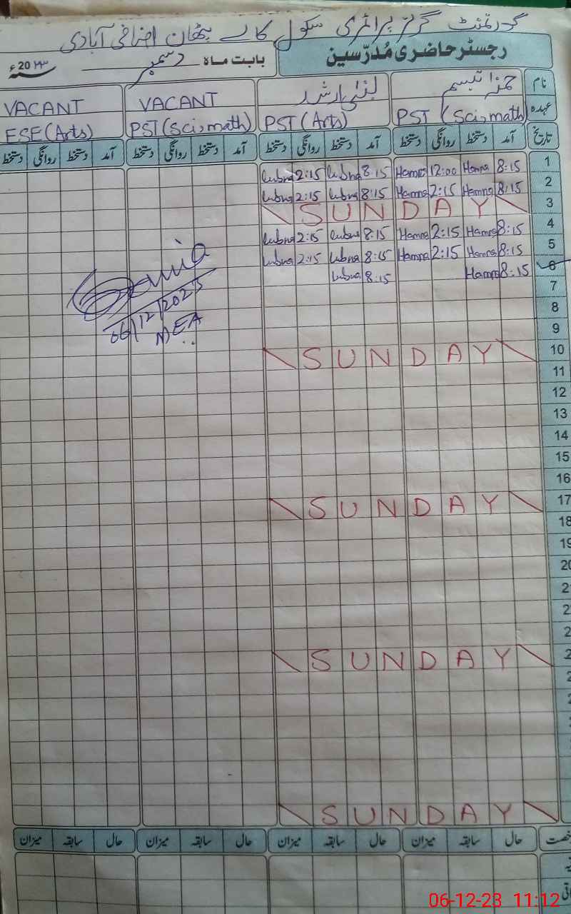 | Name: HA**** TA**** Designation: (School Headmaster's/Headmistress's) PST Phone/Cell Number: 03**** |