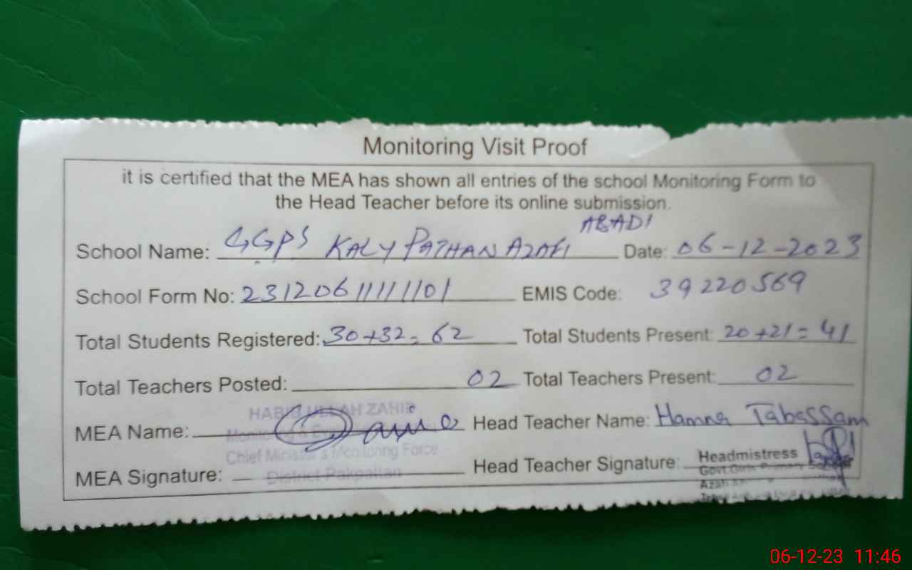 | EMIS Code: 39220569 | Name of School: GGPS KALAY PATHAN AZAFI ABADI | |||