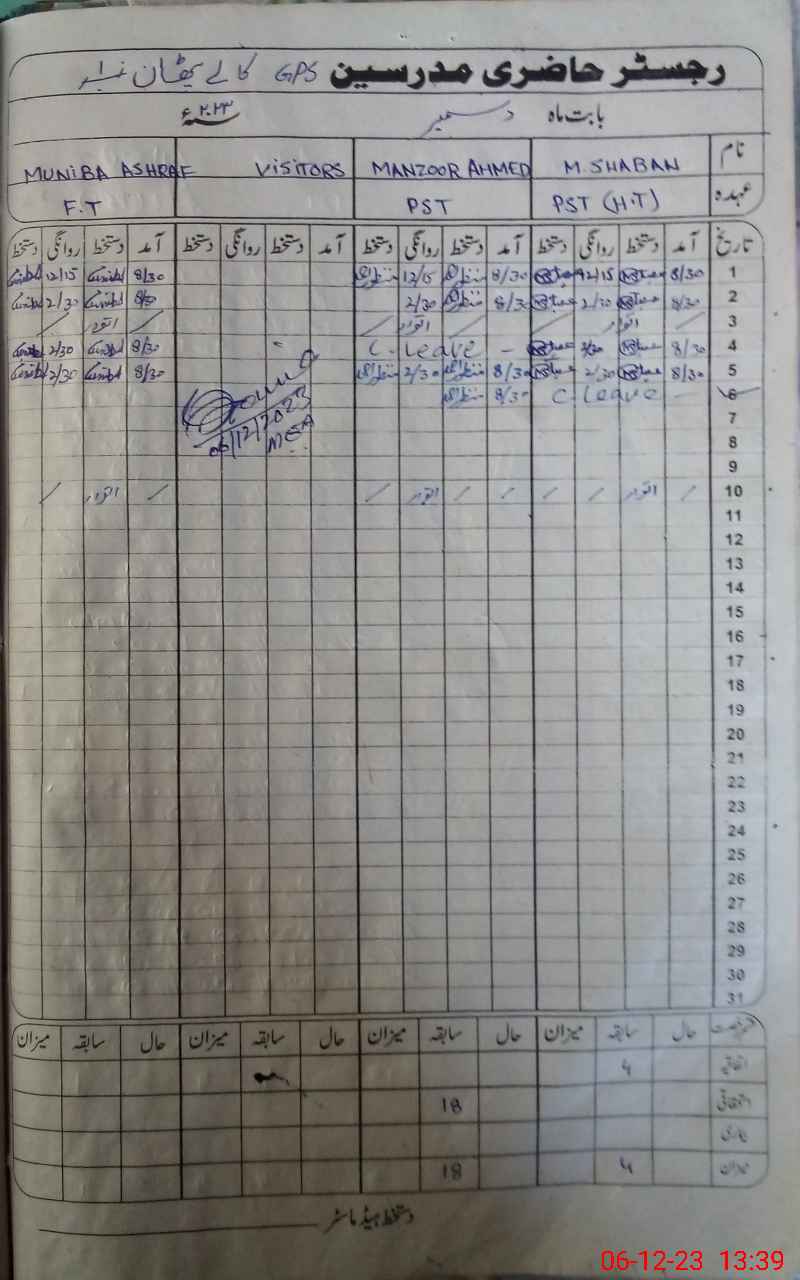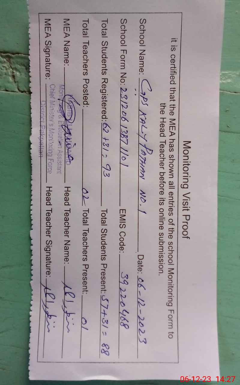 | EMIS Code: 39220468 | Name of School: GPS KALAY PATHAN NO 1 | |||